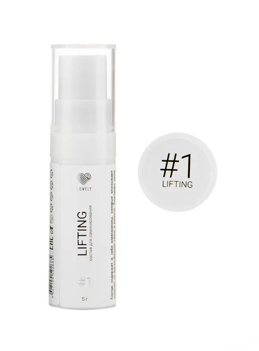 Состав для ламинирования №1 «Lifting» является первым в процедуре ламинирования. Он содержит в себе щелочные компоненты и катализаторы, которые оказывают влияние на дисульфидную связь. В результате воздействия прочность дисульфидной связи понижается и ресничка принимает форму валика.