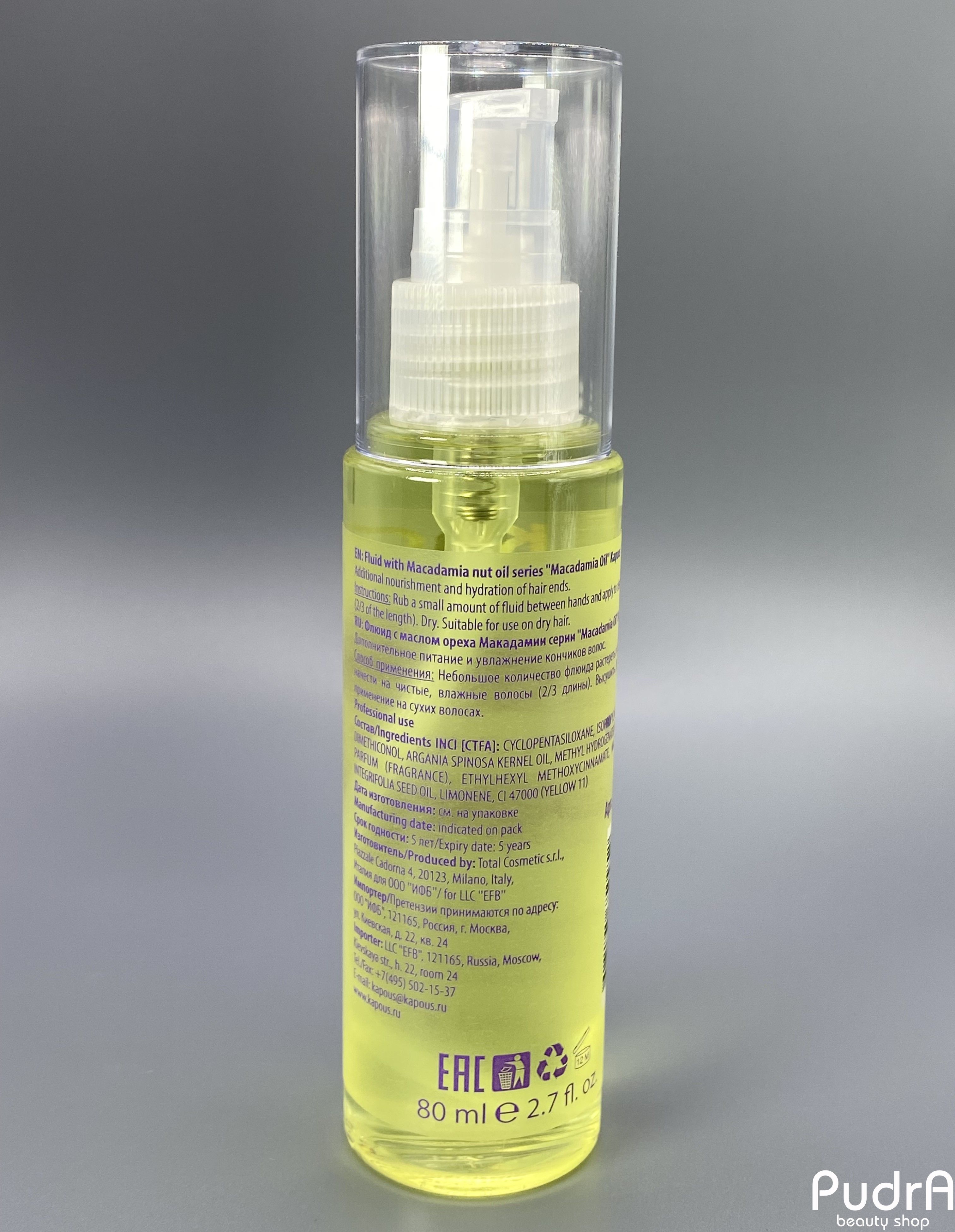 Несмываемая формула флюида «Macadamia Oil» для ежедневного ухода за кончиками волос восстанавливает структурные нарушения, предотвращая расщепление и сечение концов волос в последующем при химических и термо обработках. Масло Макадамии эффективно питает волосы, способствует глубокой регенерации, повышая упругость и эластичность. Частое применение флюида сделает волосы блестящими и шелковистыми.