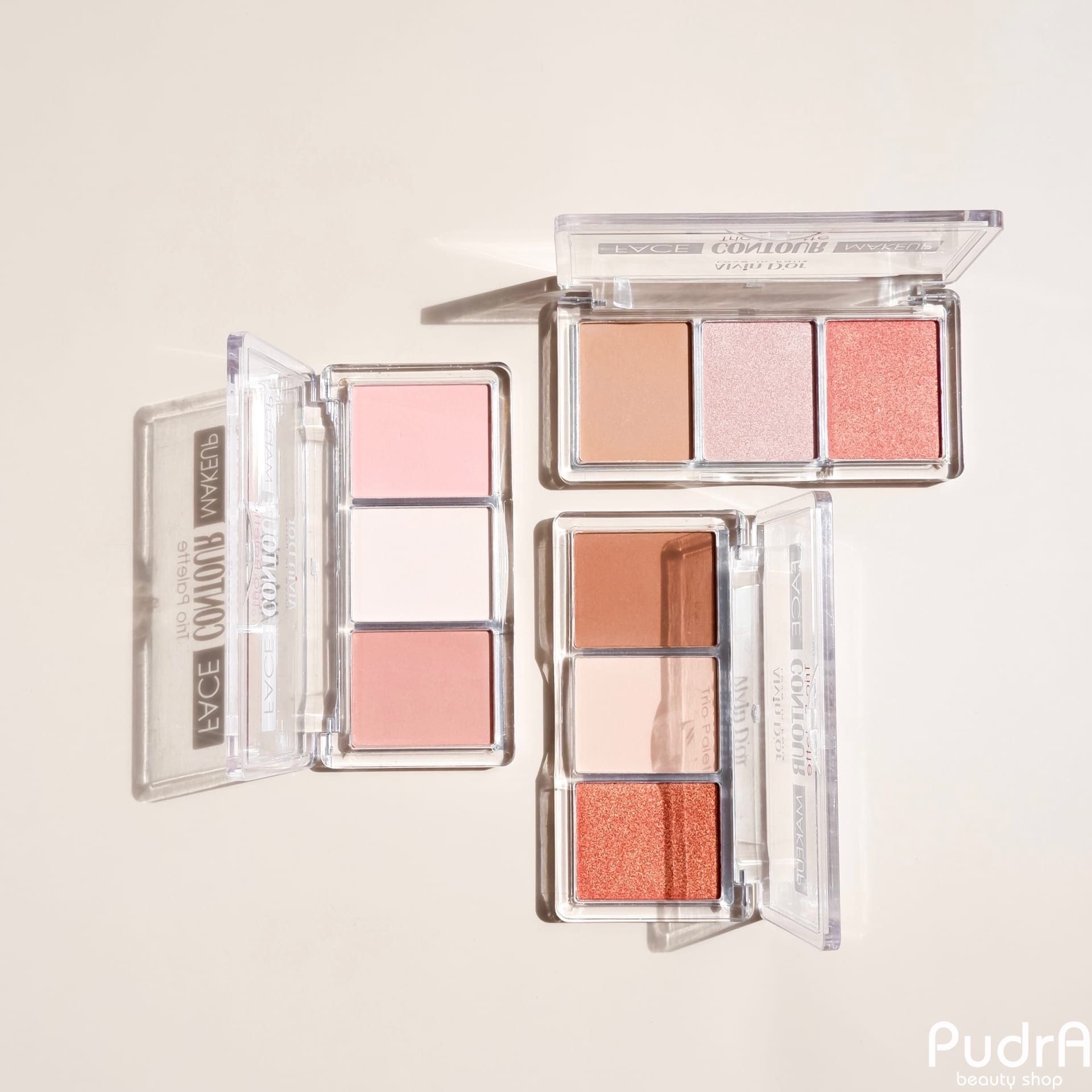 Палетка для скульптурирования лица 3х1. Контуринг + хайлайтер + румяна Создаёт идеальную форму лица в 3 простых шага! Пудра-контуринг тонирует и корректирует овал лица. Хайлайтер создаёт необходимые акценты и сияние. Румяна придают эффект свежей отдохнувшей кожи.