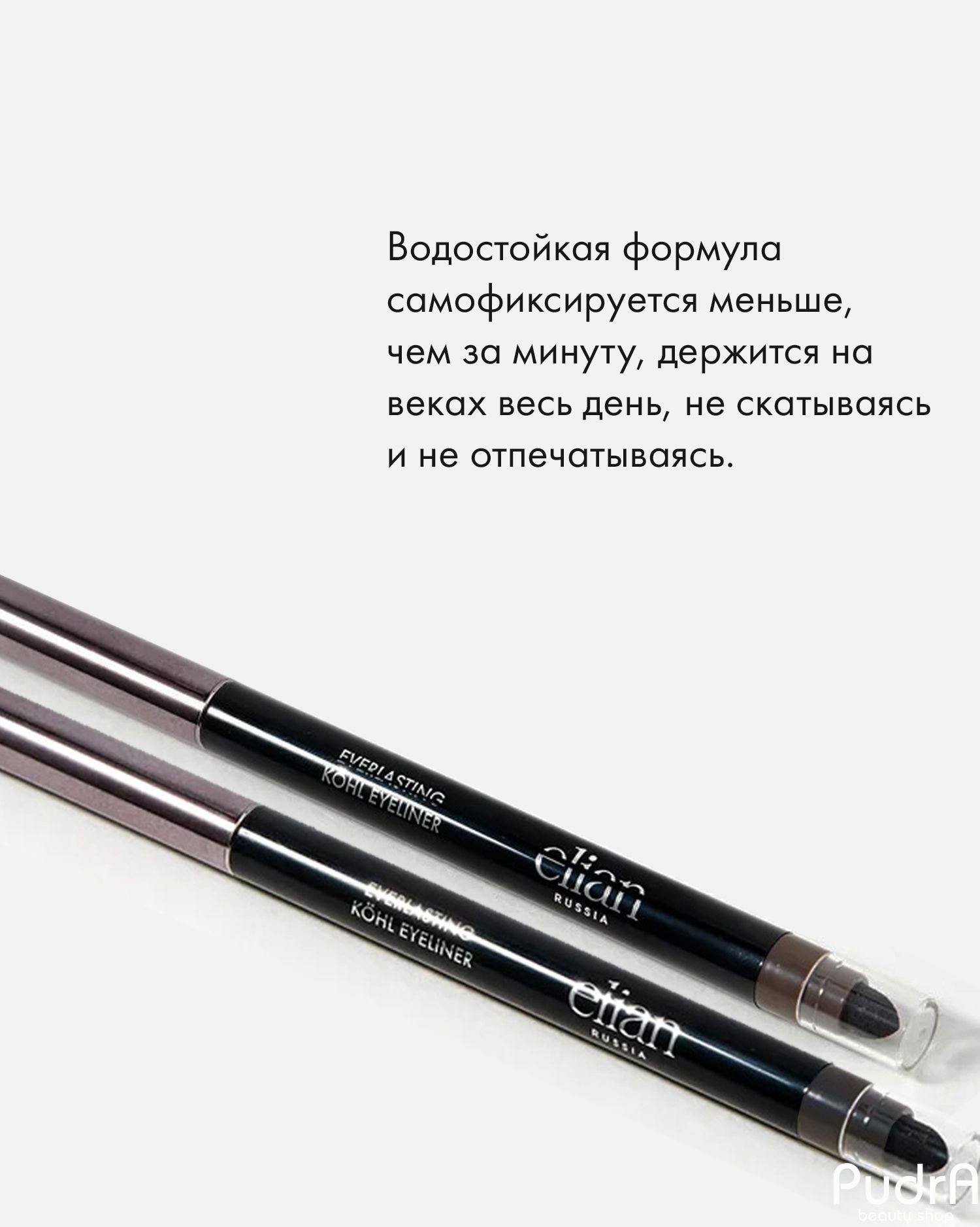 Cтойкий насыщенный карандаш для глаз со спонжем для растушевки. Мягкая текстура легко и равномерно наносится, позволяя рисовать как утонченные контуры, так и растушевывать средство для эффекта smokey eyes. Водостойкая формула самофиксируется меньше, чем за минуту, держится на веках весь день, не скатываясь и не отпечатываясь. Доступен в 8 цветах: 3 глубоких матовых и 5 с эффектом металлик.