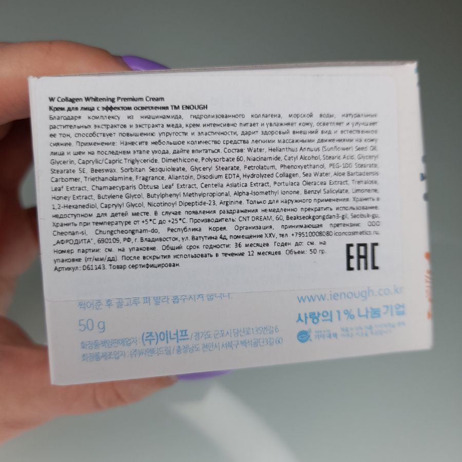 Возьмите кончиками пальцев немного крема, нанесите на лицо и равномерно распределите. Втирайте крем в кожу до полного впитывания. Используйте во время утренних и вечерних процедур. Для достижения наилучшего эффекта рекомендуется применять крем в комплексе с другими ухаживающими средствами серии Enough W Collagen.