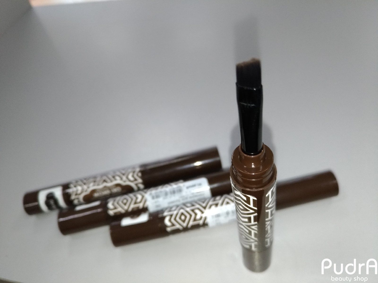 Имеет кремовую текстуру, которая поможет провести четкий контур и сделать брови более графичными, а также поможет полностью закрасить брови, имитируя эффект татуажа.