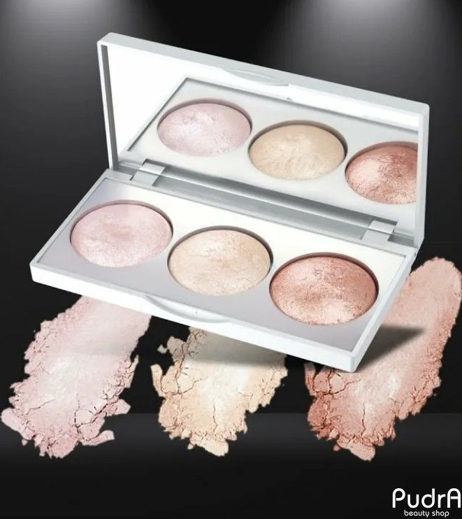 Палетка для стробинга Strobing Highliter Palette. Палитра спроектирована так, чтобы преобразить ваше лицо, для стробирующего взгляда с тремя мерцающими и сверкающими универсальными оттенками.Создает сверкающий освещенный нюанс с ее шелковистой мягкой и мерцающей формулой эффекта на лице и декольте. Ее можно наносить отдельно или поверх макияжа для идеального светящегося лица. Используйте влажную или сухую кисть, чтобы достичь желаемого сияния.
