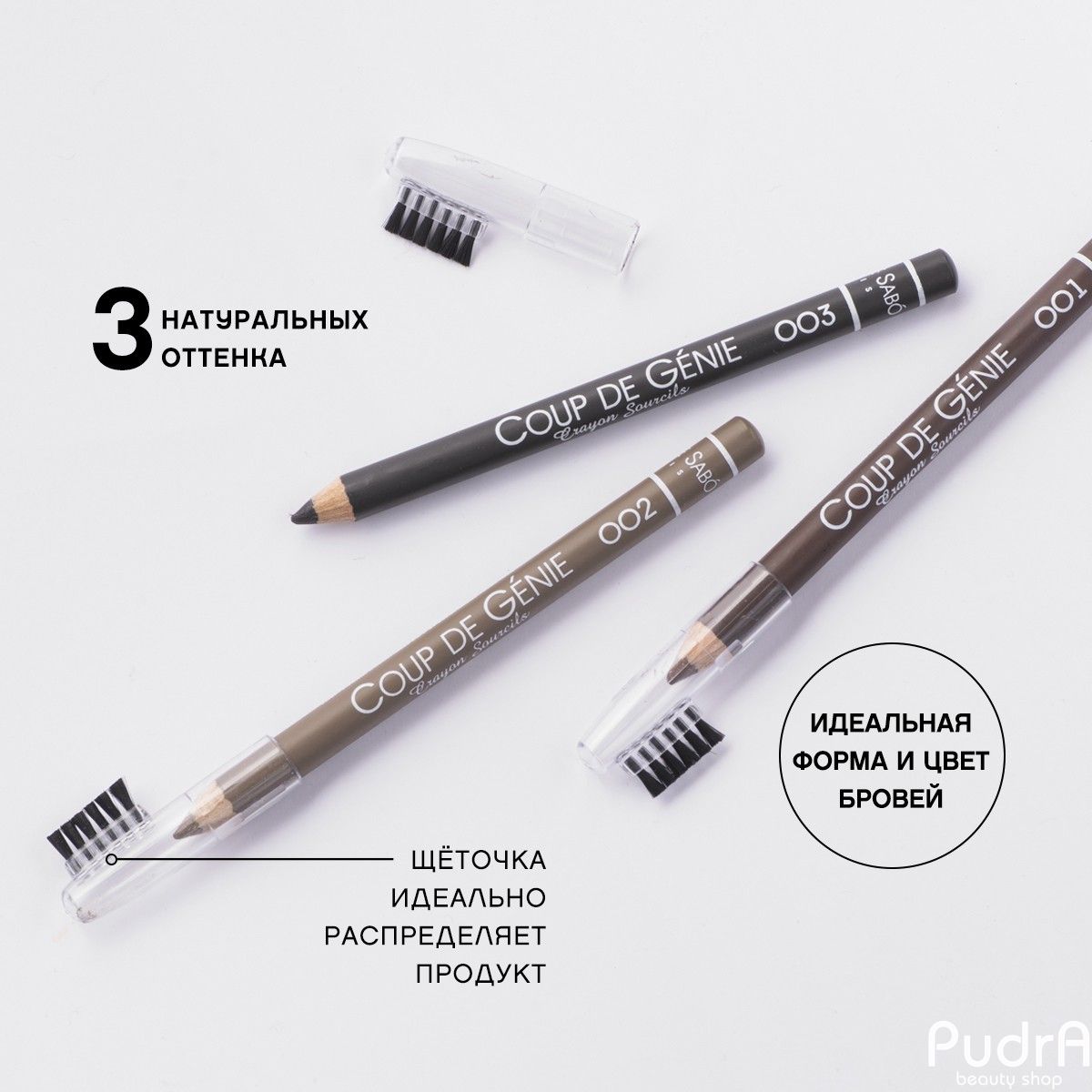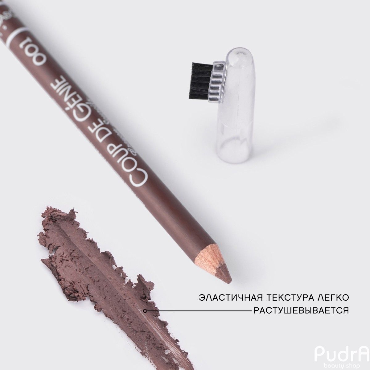 Карандаши COUP DE GÉNIE универсальных естественных оттенков корректируют форму и цвет бровей, а маленькая расческа на колпачке используется до и после нанесения карандаша для придания формы и распределения продукта по всей длине брови.