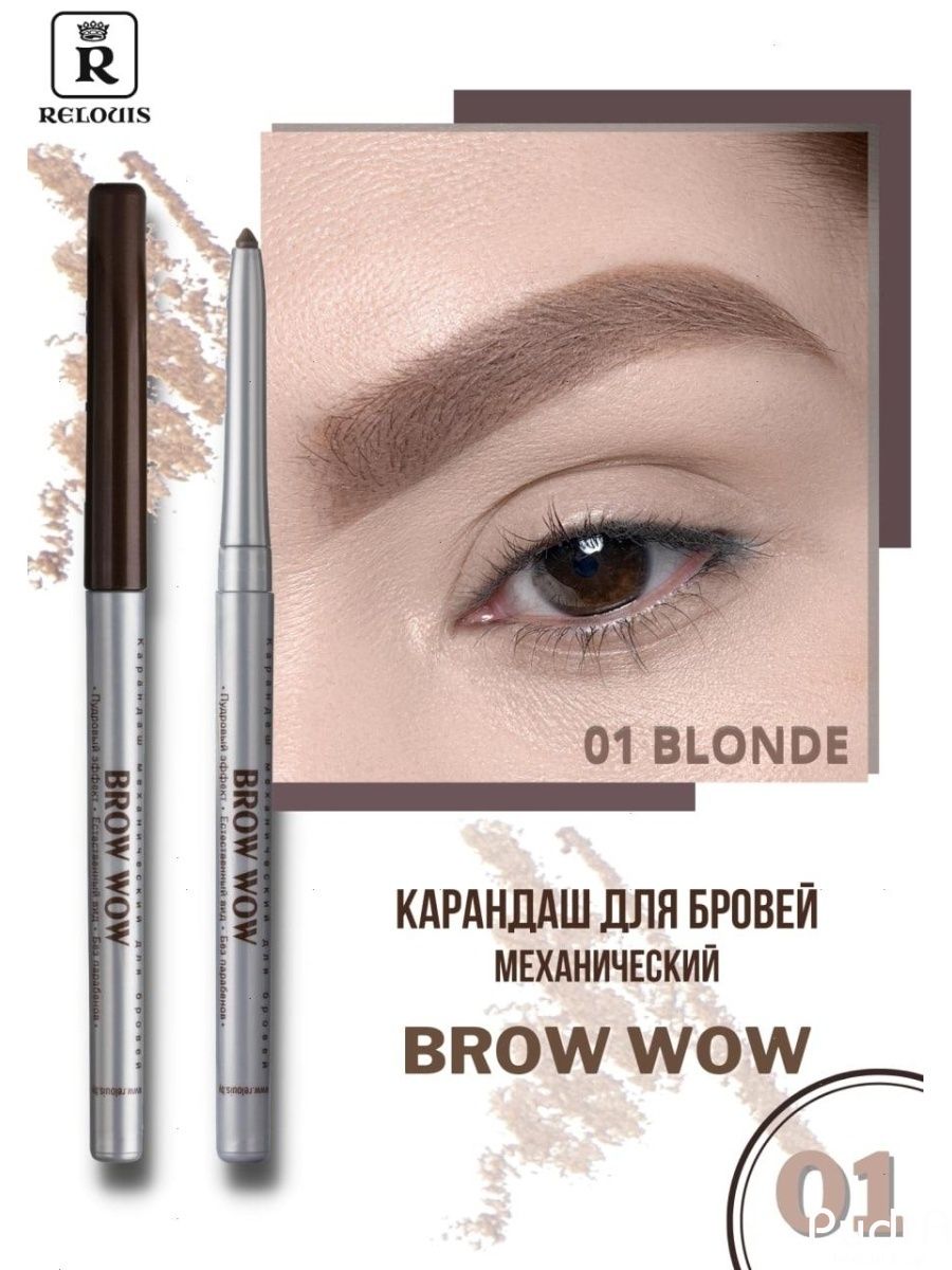 ПроизводительRELOUIS | БелоруссияТипКарандаш для бровейАвтоматическийестьЦвет01 Blonde -