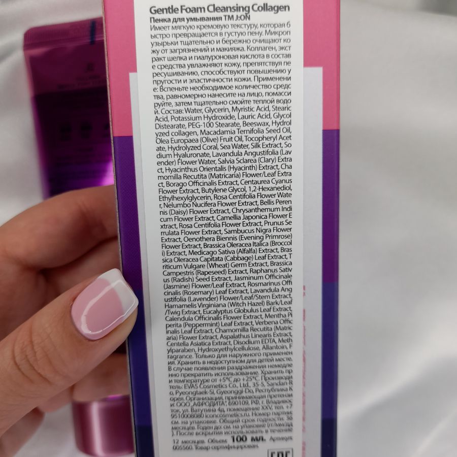 GENTLE FOAM CLEANSING COLLAGEN Пенка для умывания ТМ J:ON Имеет мягкую кремовую текстуру, которая быстро превращается в густую пену.