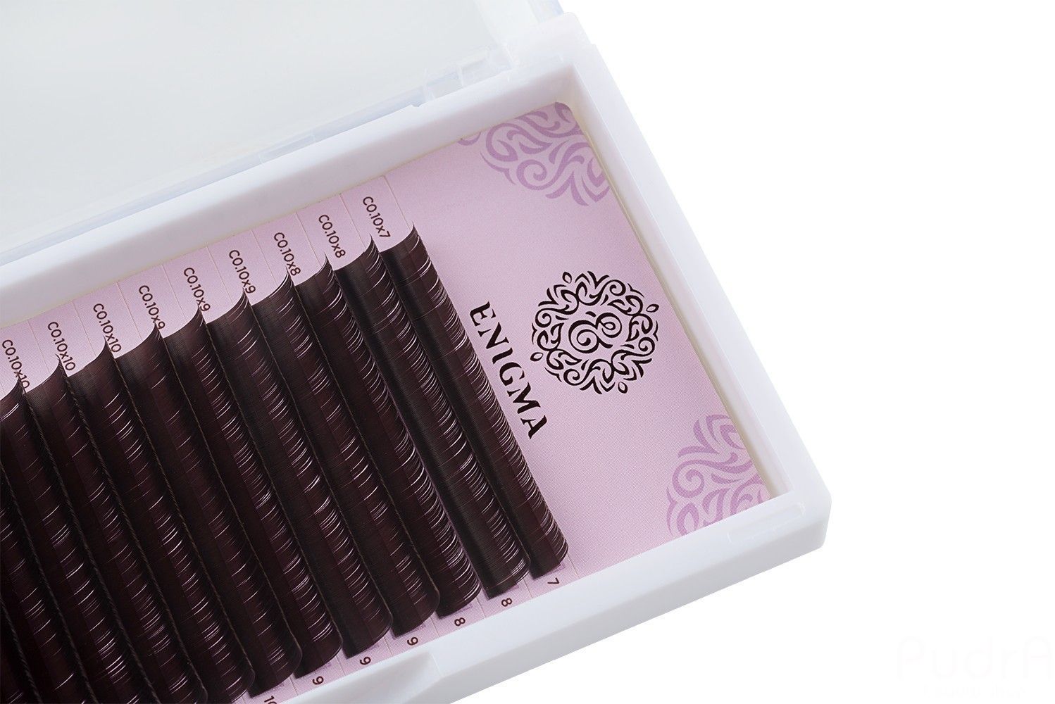 Микс ресниц в цвете Мокка представлены в изгибах C, C+, D, D+, L, L+, M в двух толщинах 0.07 и 0.1.