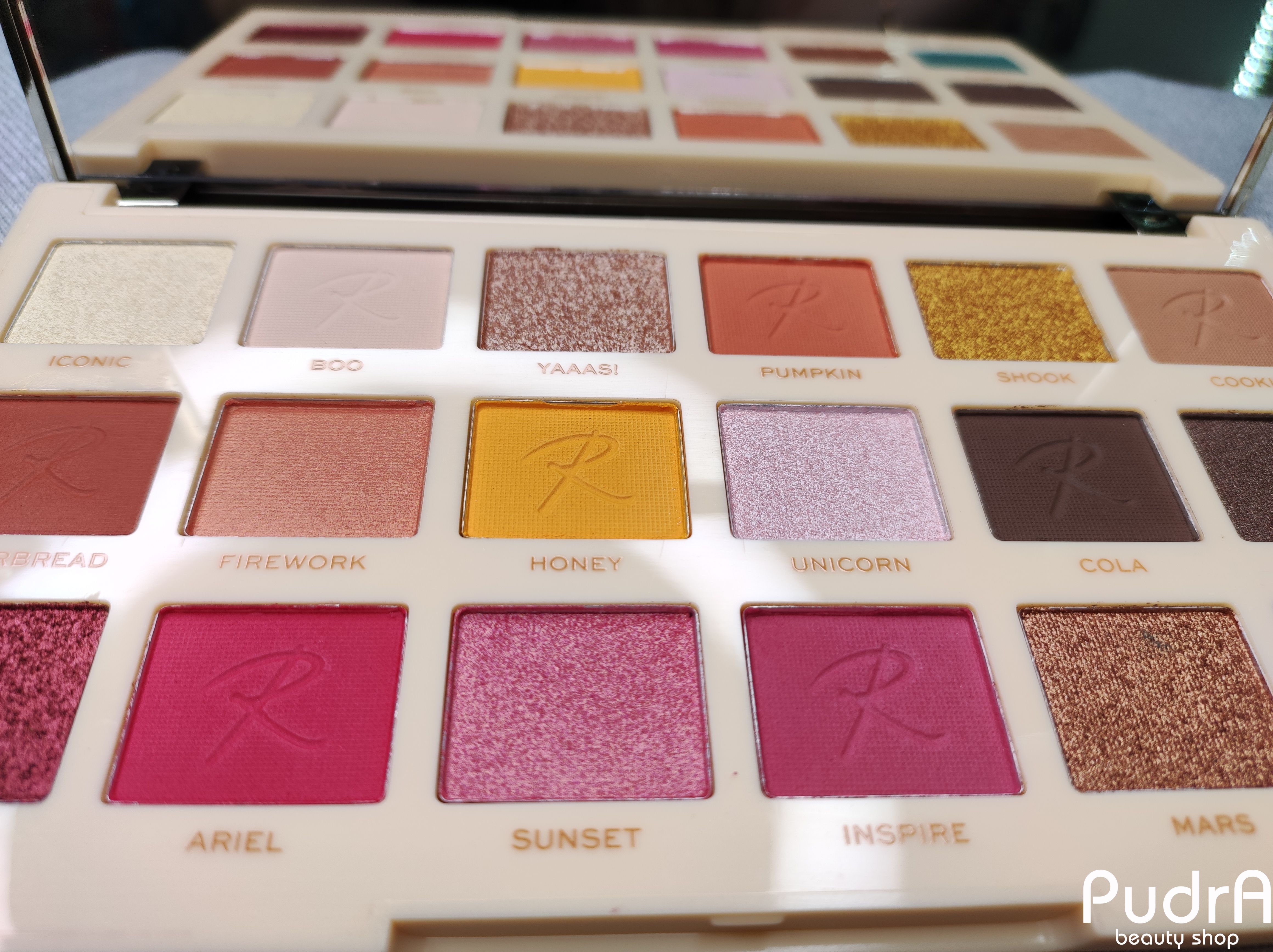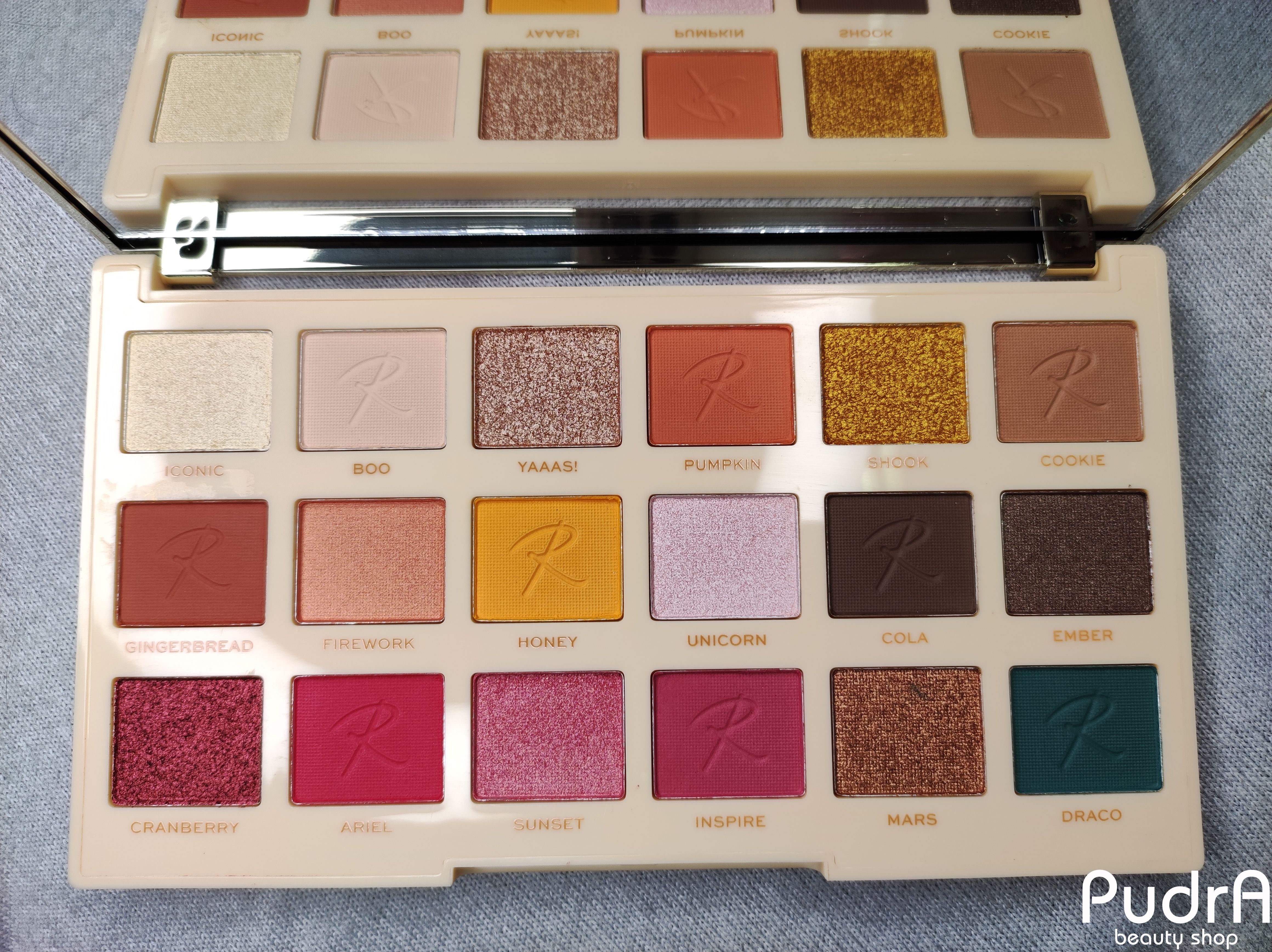 В палетке находятся 18 оттенков с разными финишами. 9 рефилов наполнены матовыми тенями, 5 – сатиновыми, оставшиеся 4 – прессованные кремовые шиммеры с космическим сиянием. Оптимальное соотношение ярких и нейтральных цветов станут основой как для дневных, так и вечерних образов.