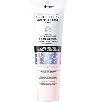 подтягивает овал лица, возвращает чёткость контурам, разглаживает морщины.Ночная маска филлер преображает кожу, пока Вы спите: комплекс активных компонентов обеспечивает выравнивание цвета лица и предупреждают появление пигментных пятен, устраняют тусклость кожи, возвращая ей фарфоровую гладкость и сияние.
