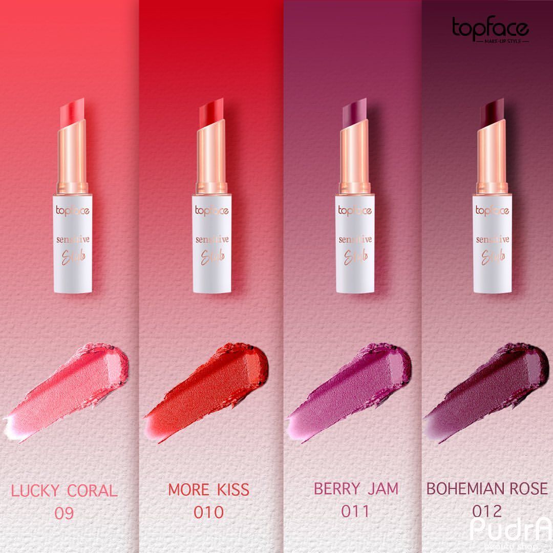 Приятный кремовый финиш, роскошная бархатная текстура, нежный чарующий аромат, ухаживающие масла в составе - это все коллекция помад Topface Sensitive Stylo! От нюдовых и нейтральных до ярких и сочных - самые актуальные и трендовые оттенки точно угодят любой красотке! Помада отлично пигментирована, максимально комфортно носится и ощущается на губах. Устойчивая формула позволит долго носить макияж губ, не поправляя его. Украсит косметичку удобный красивый дизайн футляра и корпуса помады.