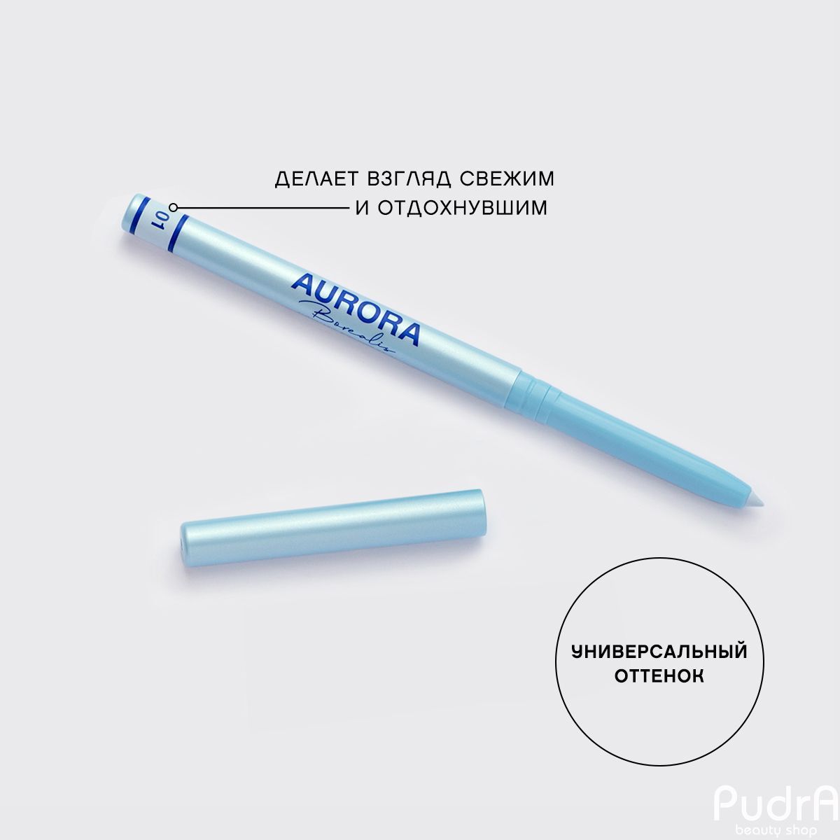 Автоматический карандаш для глаз Aurora Borealis подчеркнет взгляд и сделает его более эффектным, ярким и запоминающимся. Нежно голубой оттенок отлично подходит для создания как дневного, так и вечернего макияжа. Карандаш легко скользит, бесподобно растушевывается, идеально высветляет слизистую и освежает образ.